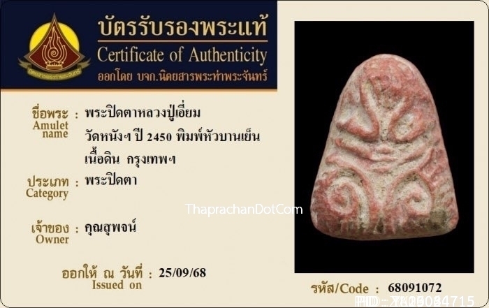 พระปิดตาหลวงปู่เอี่ยม วัดหนัง พิมพ์หัวบานเย็น