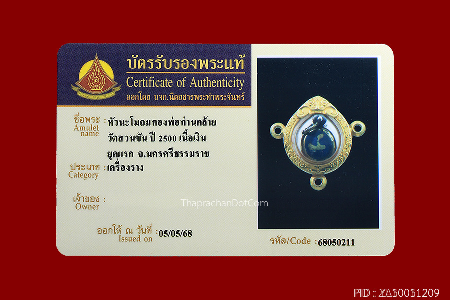 พระพุทธชินราชหลวงพ่อเกิด วัดทัพหลวงปี2482นครปฐม+บัตร