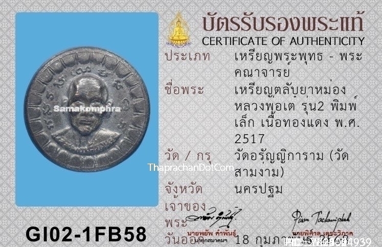 ตะกรุดมัชจุราชหลวงพ่อทา วัดพะเนียงแตก จ.นครปฐม