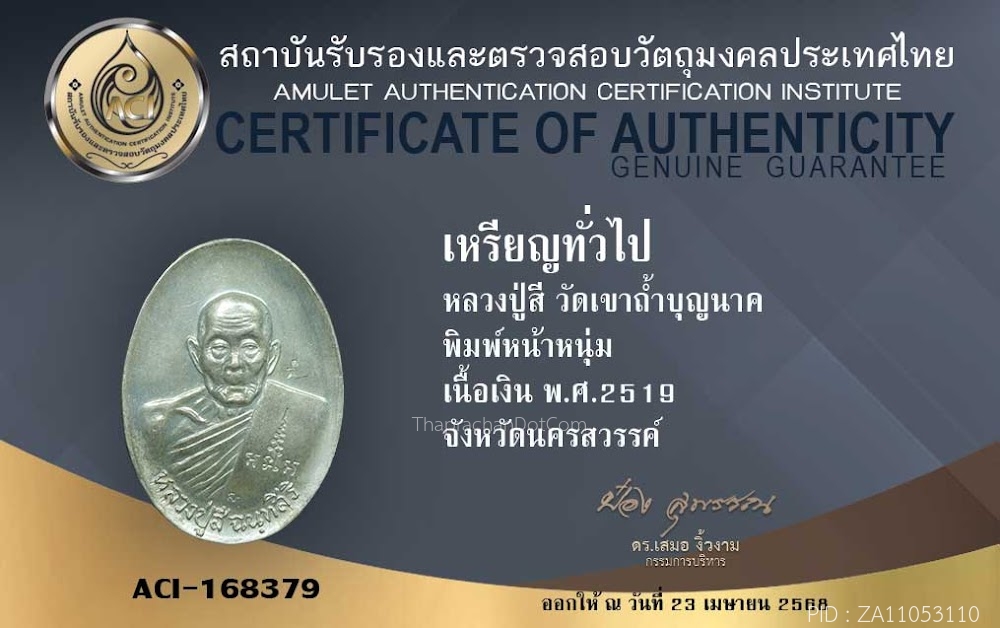 เหรียญหน้าหนุ่ม (เงิน) หลวงปู่สี วัดเขาฯ ปี 19 สวยกริ๊บ
