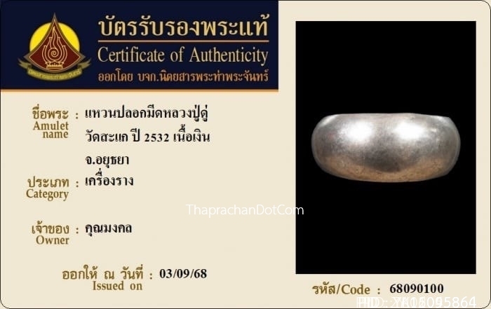 แหวนปลอกมีด หลวงปู่ดู่ วัดสะแก ปี2532 เนื้อเงิน