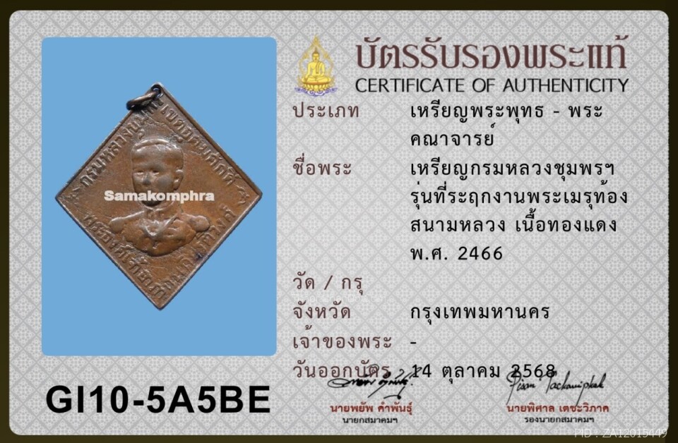 พระหลวงพ่อปาน พิมพ์ทรงนกฐานสายบัว(A)