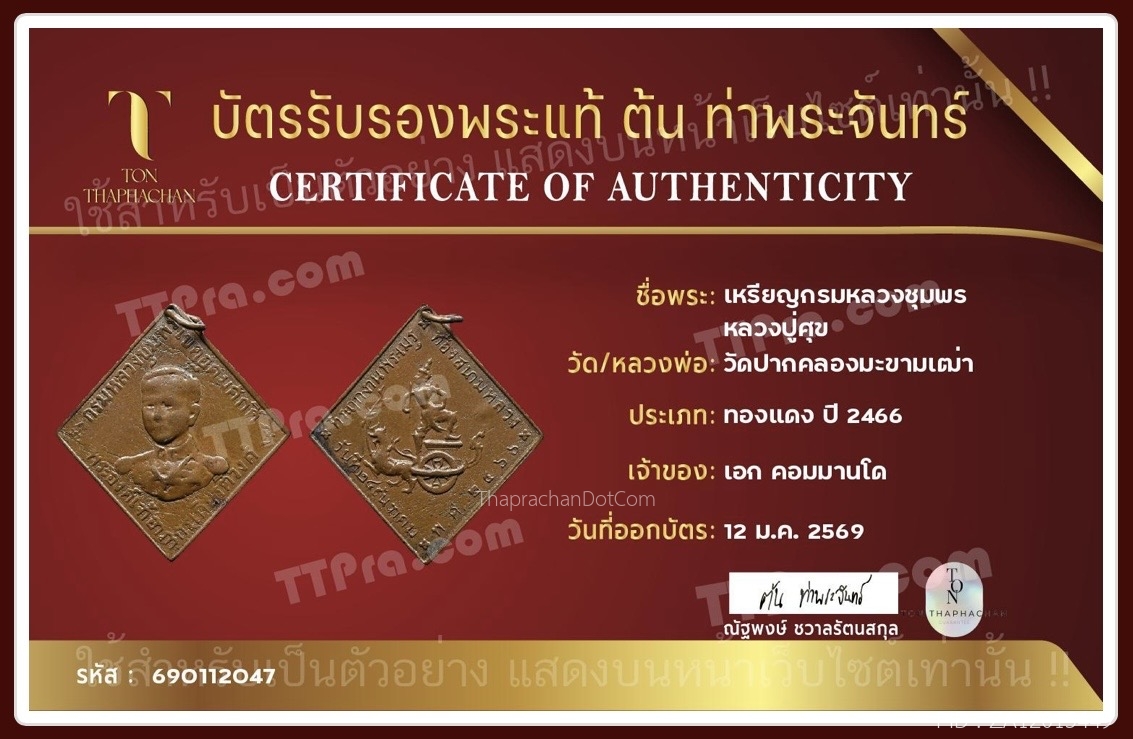 เหรียญทูลเกล้า หลวงพ่อทบ เนื้อนวะ