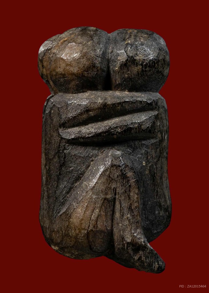 ลิงกอดกันเนื้อไม้ หลวงปู่ม่วง วัดยางงาม จ.ราชบุรี
