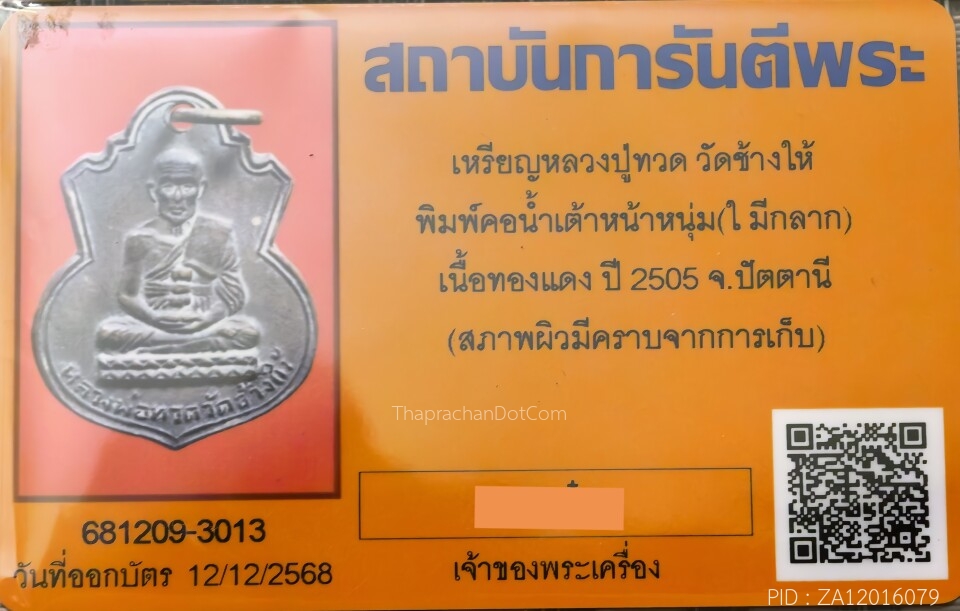 พระหลวงปู่ทวด วัดช้างให้ เตารีด พิมพ์ใหญ่ A ปั๊มซ้ำ ปี 2505
