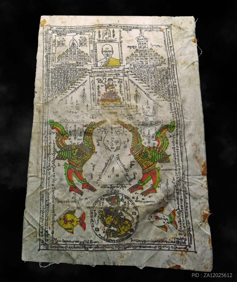 ผ้ายันต์หงส์คู่ รุ่นแรก หลวงพ่อมุ่ย วัดดอนไร่ ปี2512