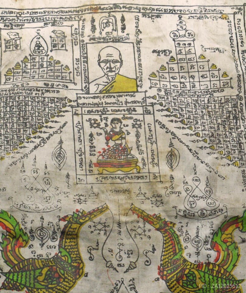 ผ้ายันต์ธงชัยหลวงพ่อเงิน วัดดอนยายหอม ยุคต้น