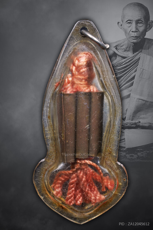 ล็อกเก็ตรูปขาวดำหลวงพ่อเกษม เขมโก ปี2535 ติดก้านธูป+จีวร