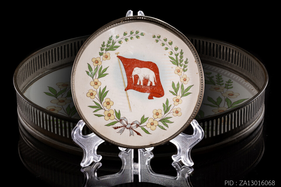 ถาดเจริญพิมพ์ลายธงช้างเผือก