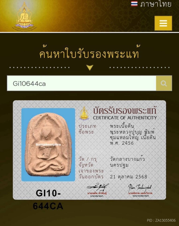 หลวงพ่อปาน พิมพ์ทรงนกสมาธิบัวเม็ด เนื้อดินเผา พ.ศ. 2460