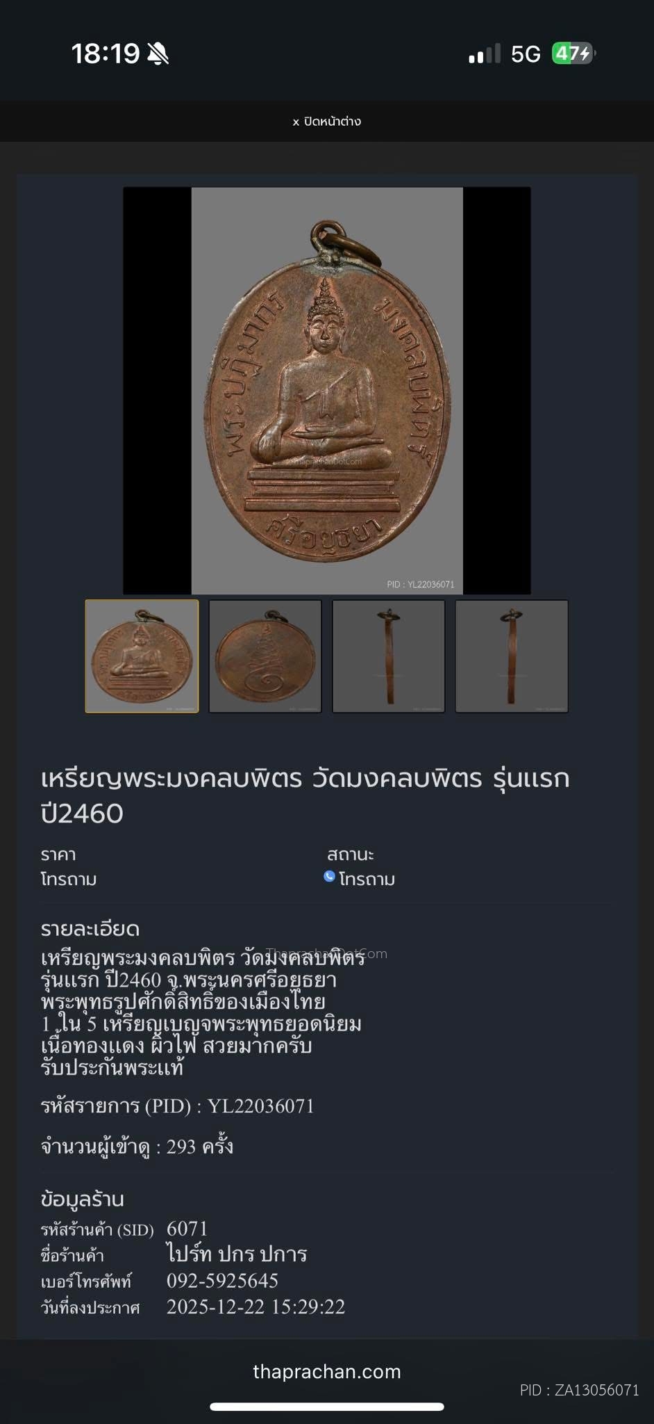 เหรียญหลวงพ่อลา วัดโพธิ์ศรี รุ่นเเรก ปี2468 บล็อคเเรก