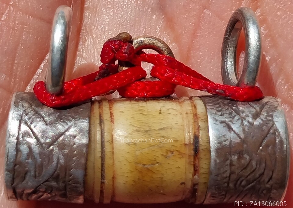 ตะกรุดลูกอมเนื้อเงินร้อยจีวร ตอกโค้ด จารมือ เก่ามาก
