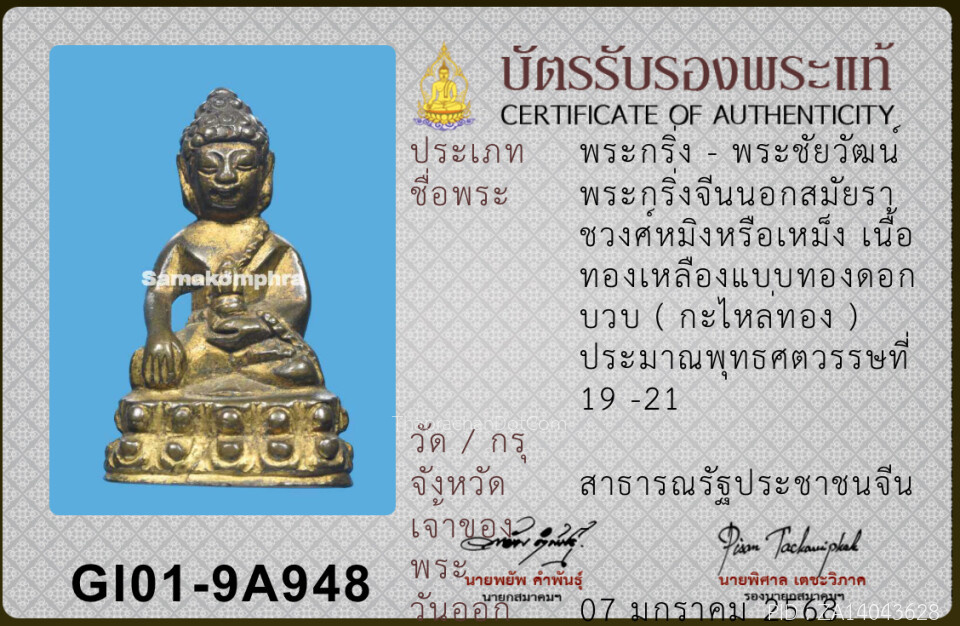 พระชัยวัฒน์ พิมพ์ ร.ศ.๑๑๘ หลวงปู่บุญ วัดกลางบางแก้ว ปี 2444