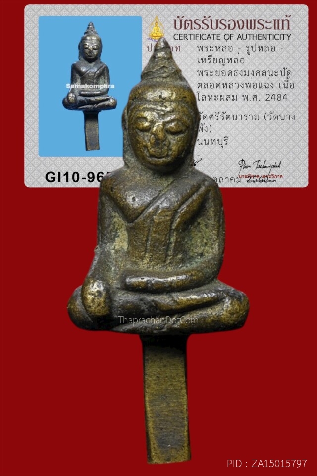 พระยอดธงมงคลชัย หลวงพ่อแฉ่ง วัดบางพัง ปี2484