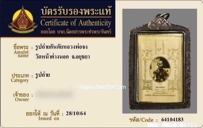 ล็อคเก็ตพระพุทธเจ้า หลวงพ่อผินะ วัดสนมลาว จ.สระบุรี