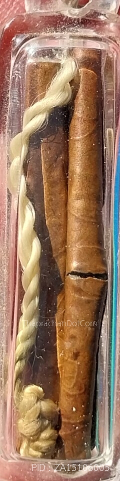 ตะกรุดไม้พอกผงยาถักเชือกปิดทองเก่า ยาว 3 นิ้ว