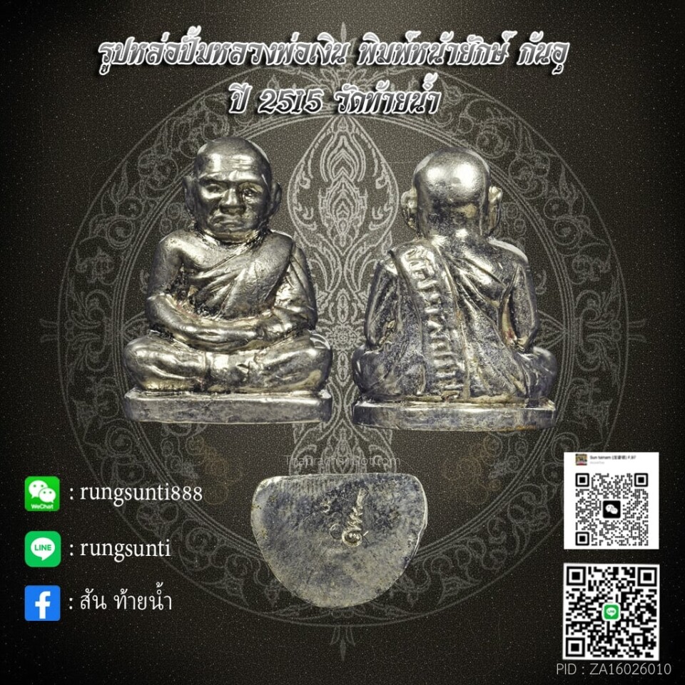รูปหล่อหลวงพ่อเงิน ปี 2515 วัดท้ายน้ำ เนื้อเงิน
