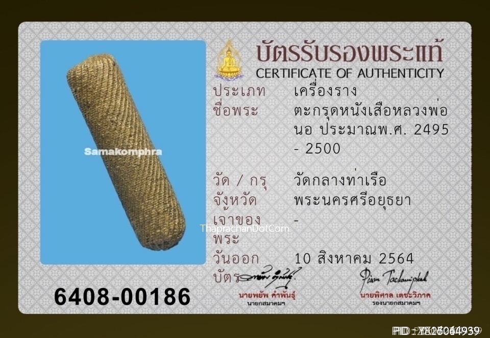 ตะกรุดสาริกาหน้าผากเสือหลวงพ่อนอ วัดกลางท่าเรือ จ.อยุธยา