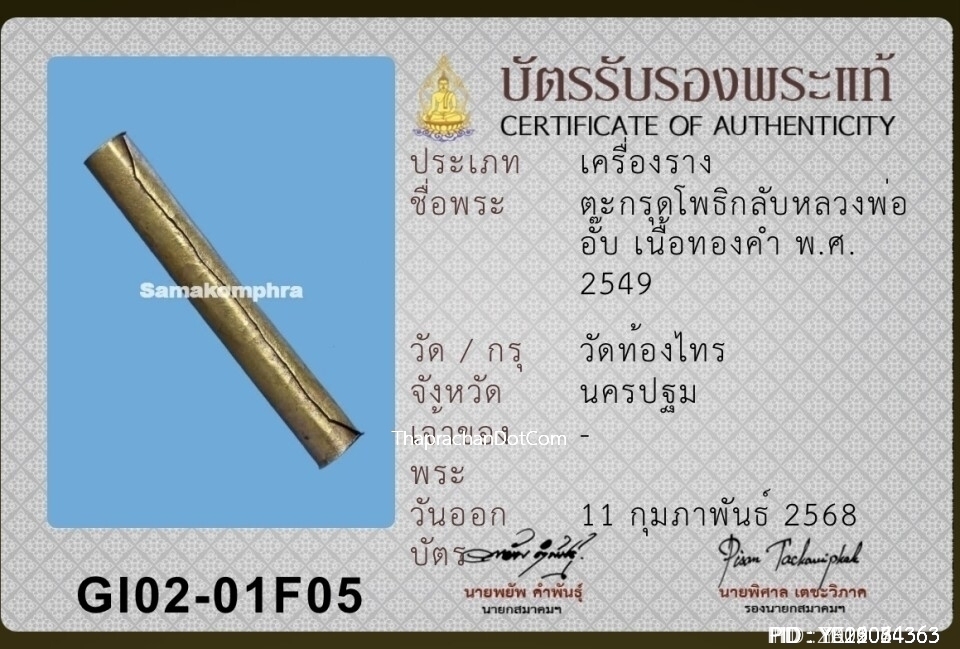 ตะกรุดโพธิ์กลับ หลวงพ่ออั๊บ วัดท้องไทร ปี2549 เนื้อทองคำ