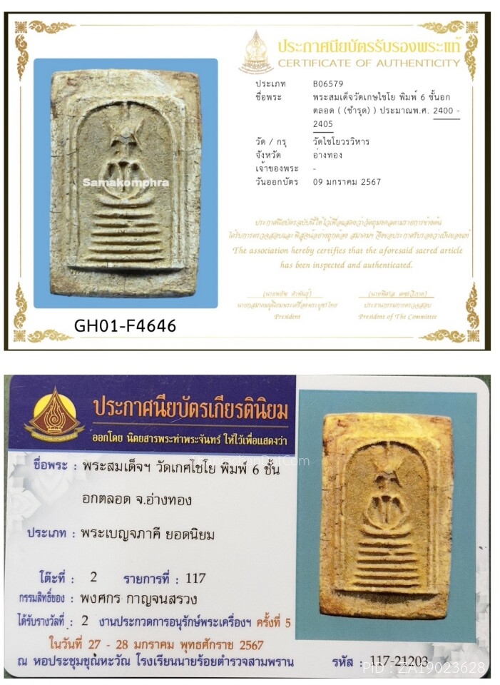 พระสมเด็จวัดเกศไชโย จ.อ่างทอง พิมพ์หกชั้นอกตลอด