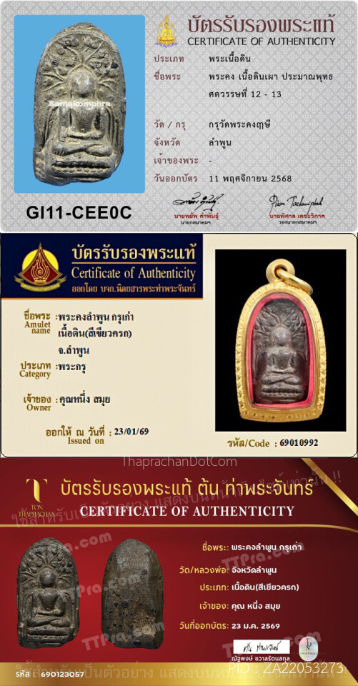 พระคงเขียวครก กรุเก่า เนื้อดิน จ.ลำพูน