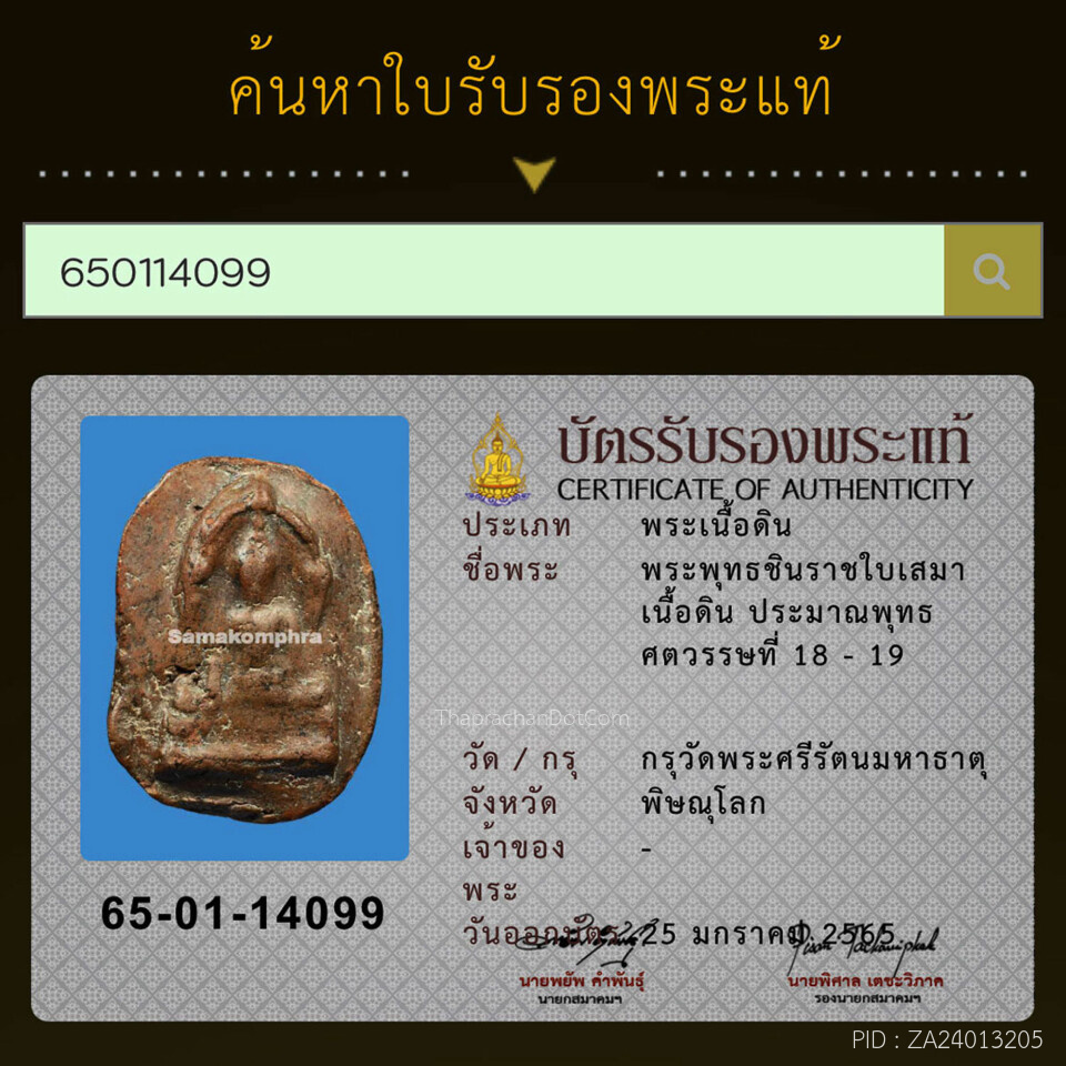 พระพุทธชินสีห์บูชาสมัยรัชกาล วัดบวรนิเวศฯ กทม. ตัก 5 นิ้ว