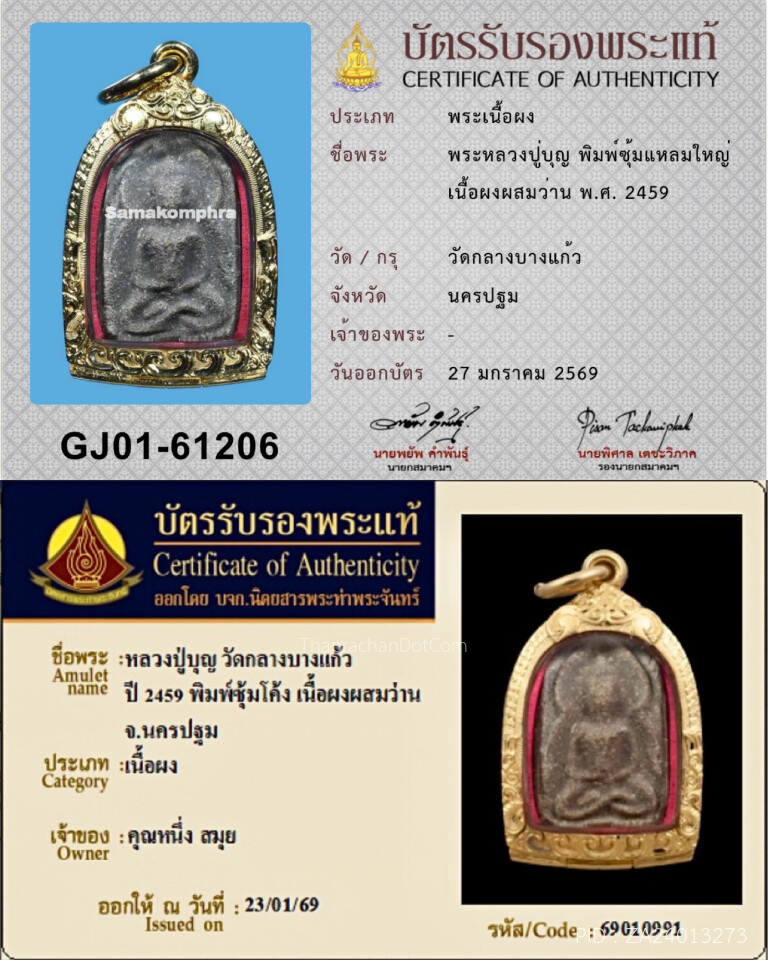 หลวงพ่อปาน ทรงเม่นบัว 2 ชั้น 8 จุด ปี พ.ศ.2460 วัดบางนมโค