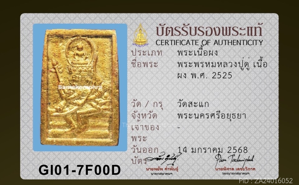 พระพรหม หลวงปู่ดู่ วัดสะแก เนื้อผง ปี 2525