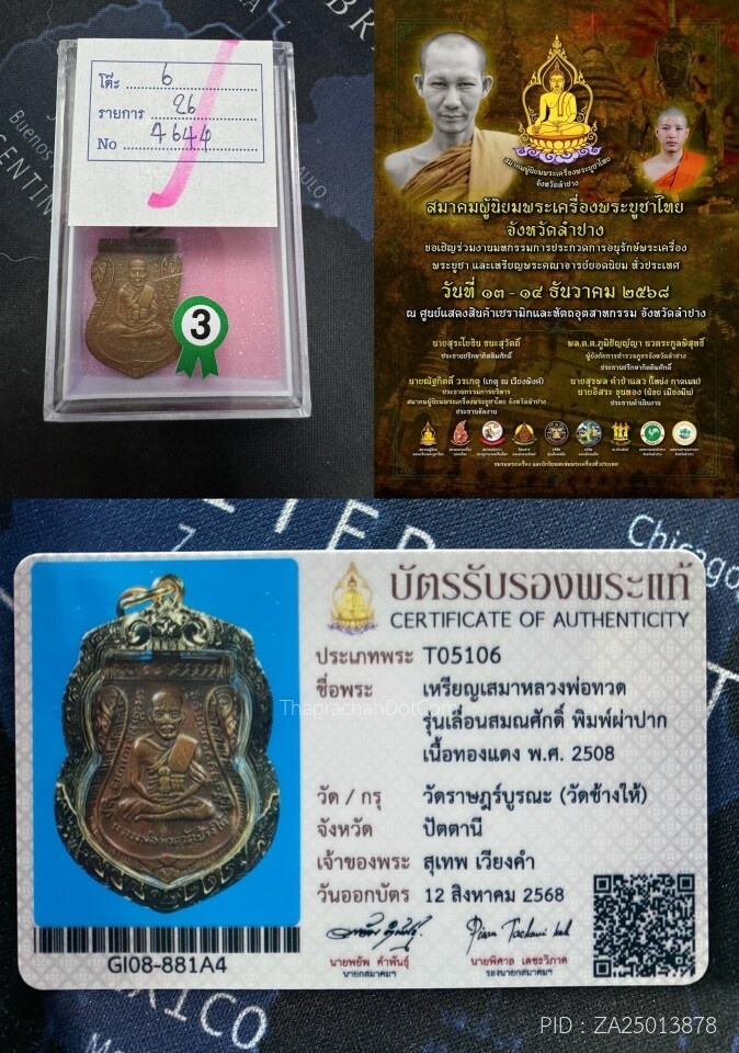 ลป.ทวด เลื่อนสมณศักดิ์ ปี 08 เนื้อทองแดง มีบัตรรับรองสมาคม