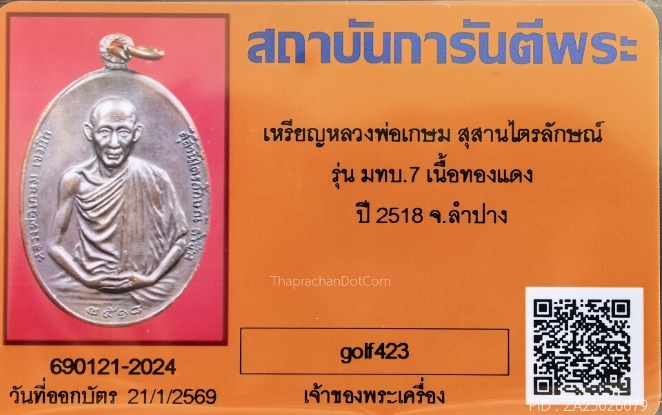 สมเด็จเชียงแสนแร่ดำ (รุ่นชุนดูฮวาน) ปี 2521 บัตรเอ็มหัตถ์เทพ