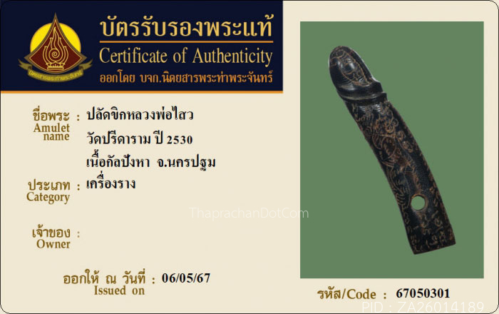 ปลัดขิกเสือบินหลวงพ่อไสว ปี2530 วัดปรีดาราม จ.นครปฐม