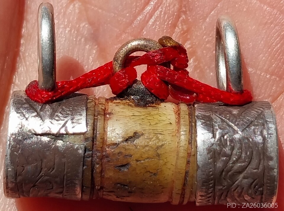 ตะกรุดลูกอมเนื้อเงินร้อยจีวร ตอกโค้ด จารมือ เก่ามาก