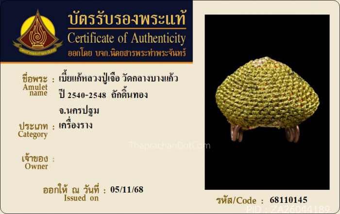 พระขุนแผนเคลือบ รุ่นสมบูรณ์ทรัพย์ ปี2545 หลวงปู่ชื้น