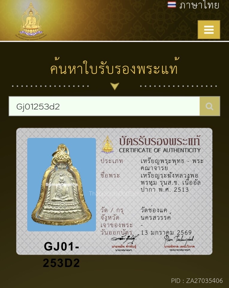 หลวงพ่อกวย พิมพ์ซุ้มระฆังหลังสิงห์ เนื้อผงแตกลายงา พ.ศ. 2521