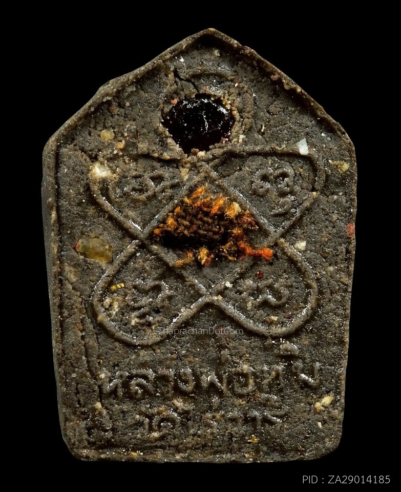 พระปิดตาฝังพลอย หลังยันต์ห้า เนื้อน้ำตาล พร้อมตลับพรประภา