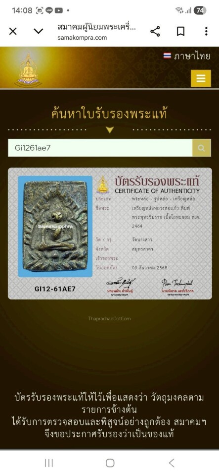 พระชัยวัฒน์พิมพ์ล้มลุกท่านเจ้ามาวัดสามปลื้มออกวัดตึก