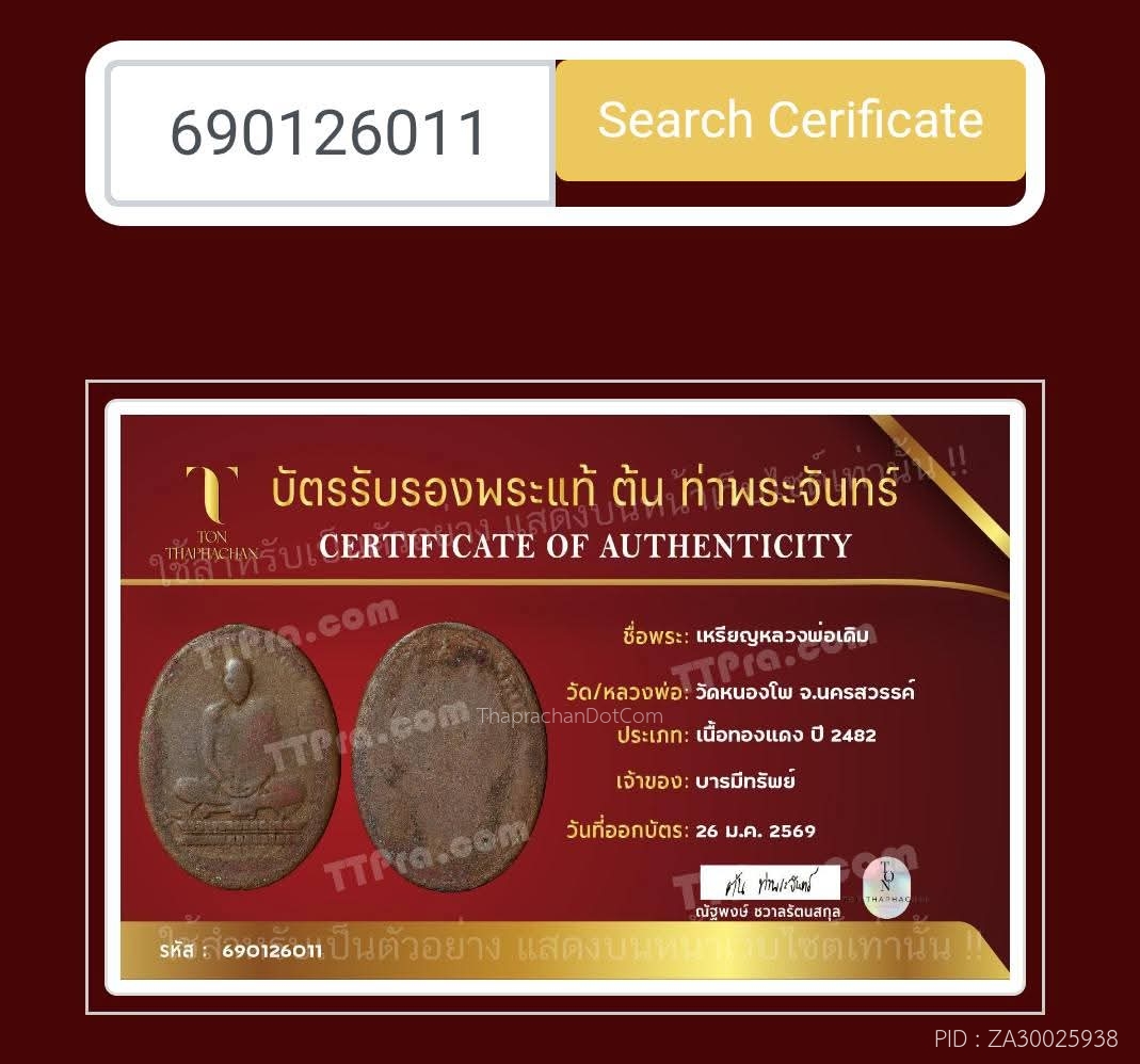 เหรียญหลวงพ่อเดิมวัดหนองโพปี2482 จ.นครสวรรค์