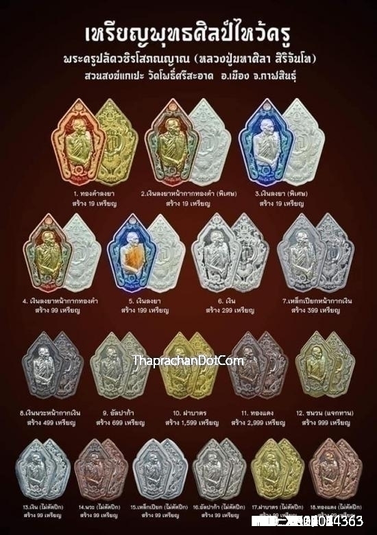 เหรียญพุทธศิลป์ไหว้ครู64 หลวงปู่มหาศิลา เนื้อทองฝาบาตร