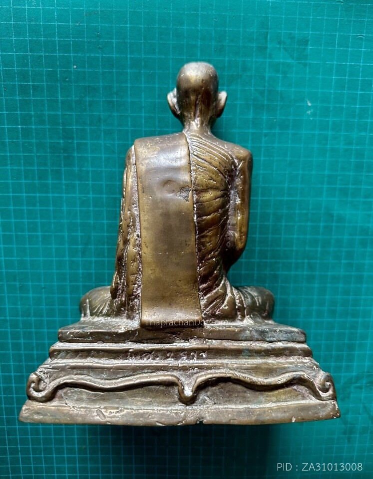 รูปเหมือนปั๊มหลวงพ่อพรหมเข่ากว้างเนื้อทองระฆังหลังเข็มกลัด