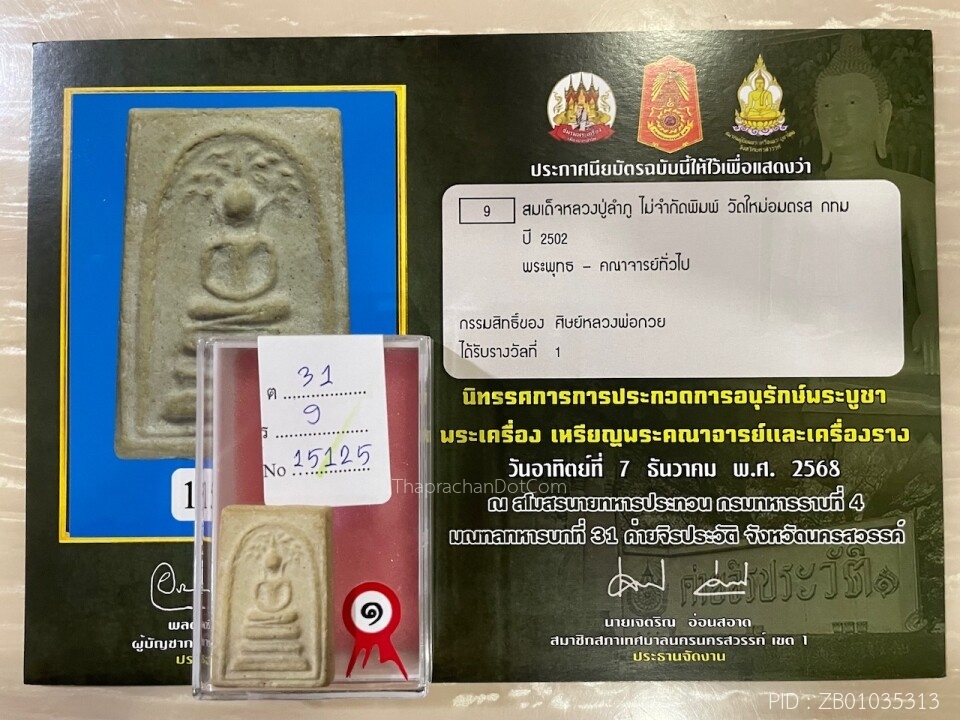 ติดรางวัลที่2+บัตรรับรอง สมเด็จบางขุนพรหม31 พิมพ์ใหญ่