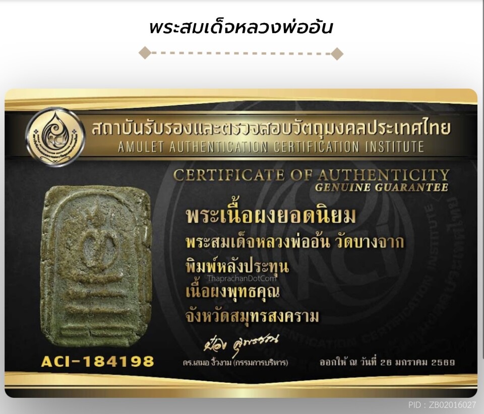 พระสมเด็จหลวงพ่ออ้น พิมพ์หลังประทุน(เล็ก) วัดบางจาก