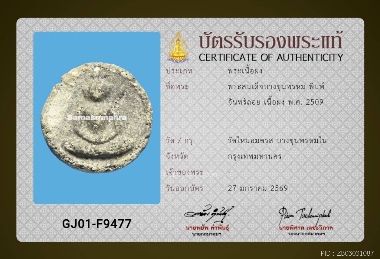 พระสมเด็จเคลือบหลวงพ่ออั้นวัดพระญาติปี2496