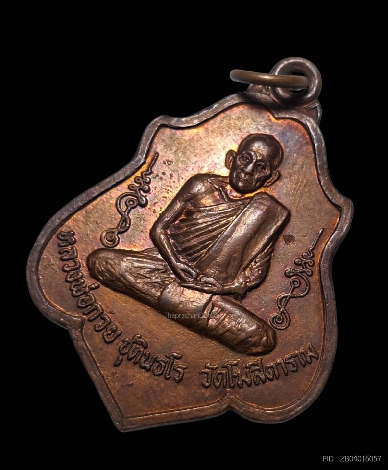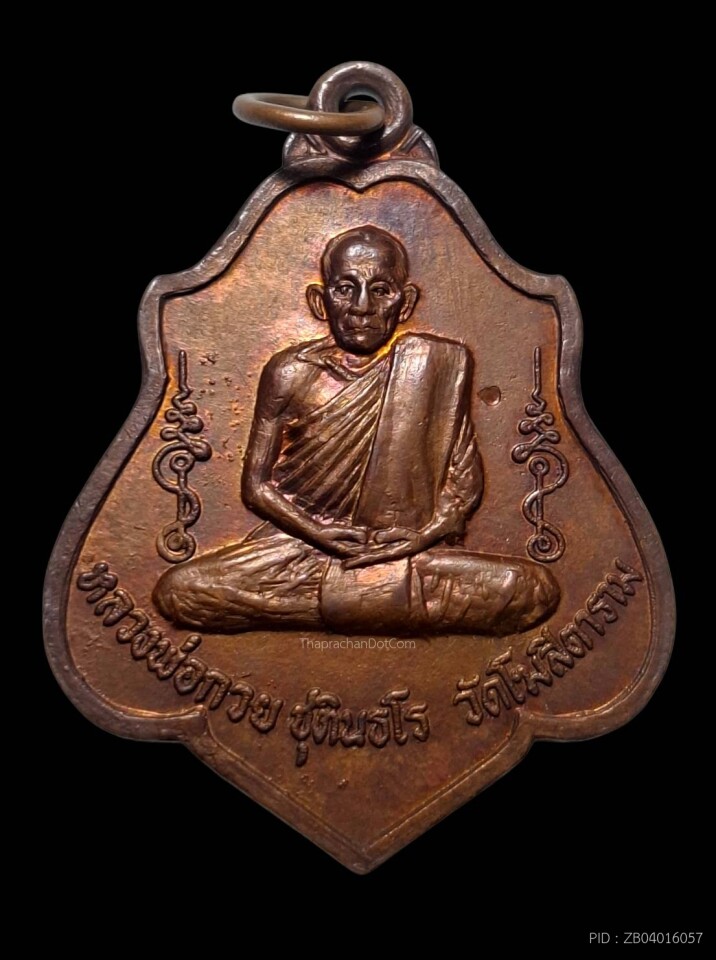 เหรียญรุ่นแรกหลวงพ่ออบ วัดถ้ำแก้ว เนื้อนวะโลหะผิวไฟแดง