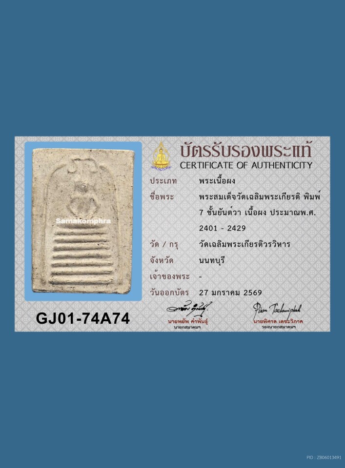 มีบัตร พระสมเด็จ วัดเฉลิมพระเกียรติ พิมพ์ 7 ชั้น ยันต์วา