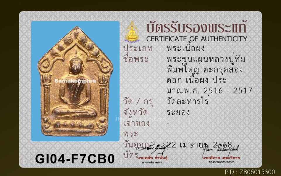 พระขุนแผนผงพรายกุมาร หลวงปู่ทิม วัดละหารไร่ ระยอง