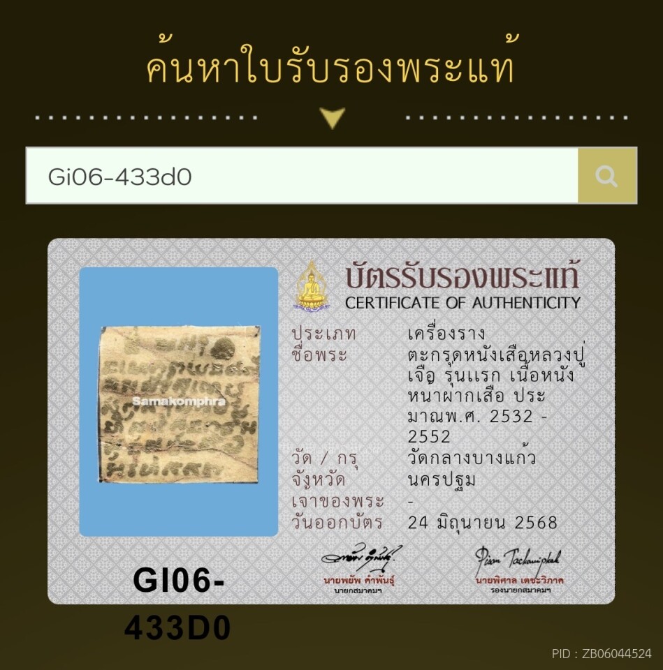 ตะกรุดหนังหน้าผากเสือ หลวงปู่เจือ วัดกลางบางแก้ว