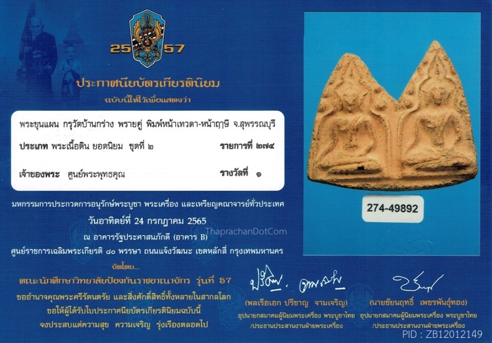 พระขุนแผนพลายคู่ พิมพ์หน้าฤาษี สวยแชมป์