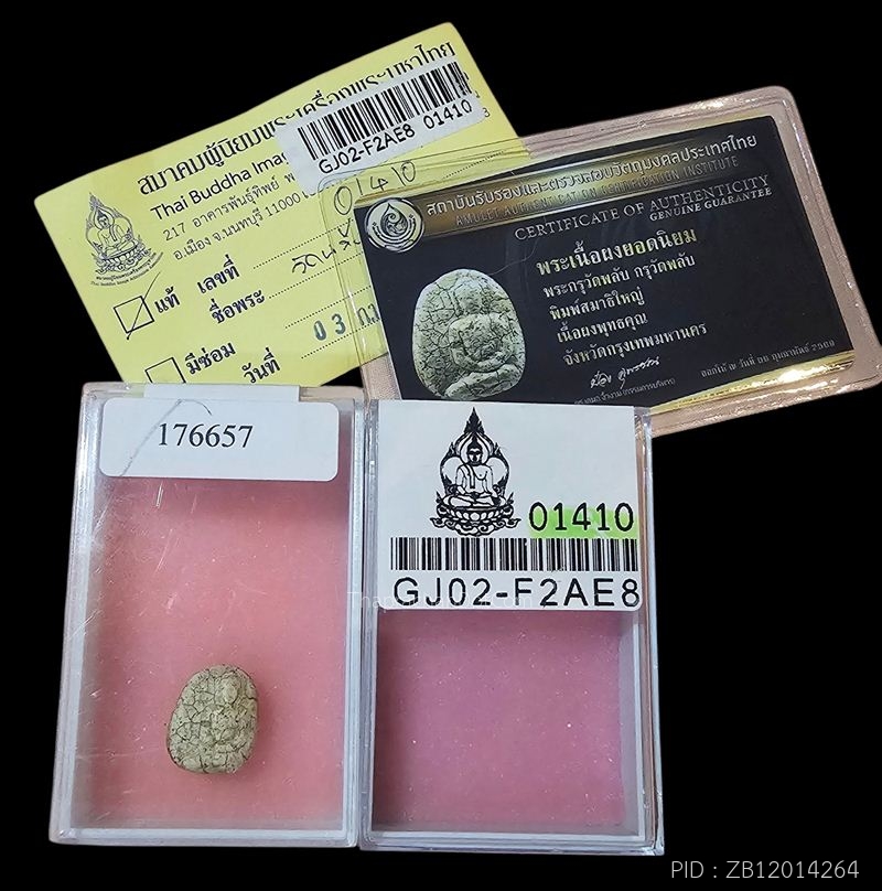 พระวัดพลับ พิมพ์พุงป่องเล็ก เนื้อผง พ.ศ.2380 พร้อมบัตรสมาคม