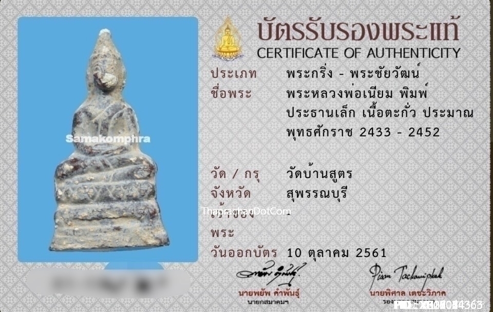 หลวงพ่อเนียม พิมพ์พระประธาน เนื้อตะกั่ว วัดบ้านสูตร