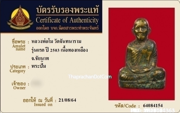 รูปหล่อหลวงพ่อโม วัดจันทนาราม บรรจุอัฐิ รุ่นแรก ปี 2503